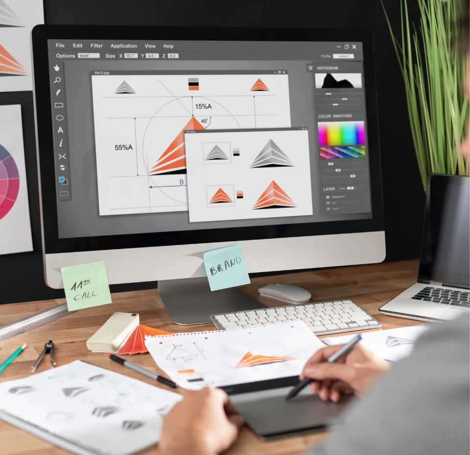We craft visually striking designs that elevate your brand’s identity and connect with your audience. From logos to complete brand systems, our team ensures every element reflects your vision with clarity and creativity.